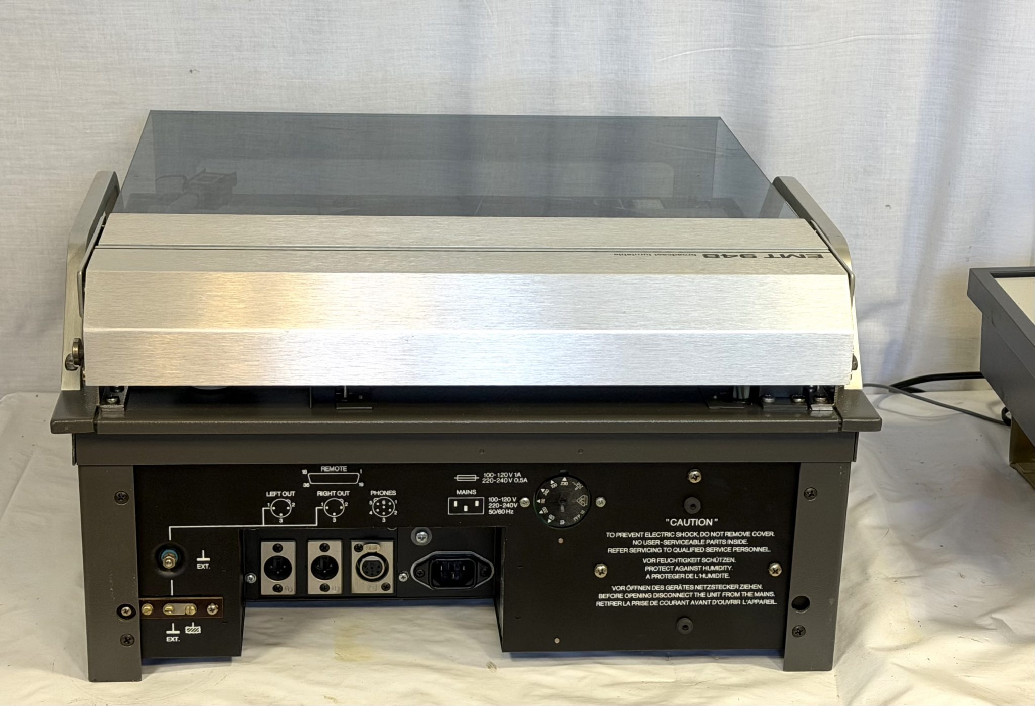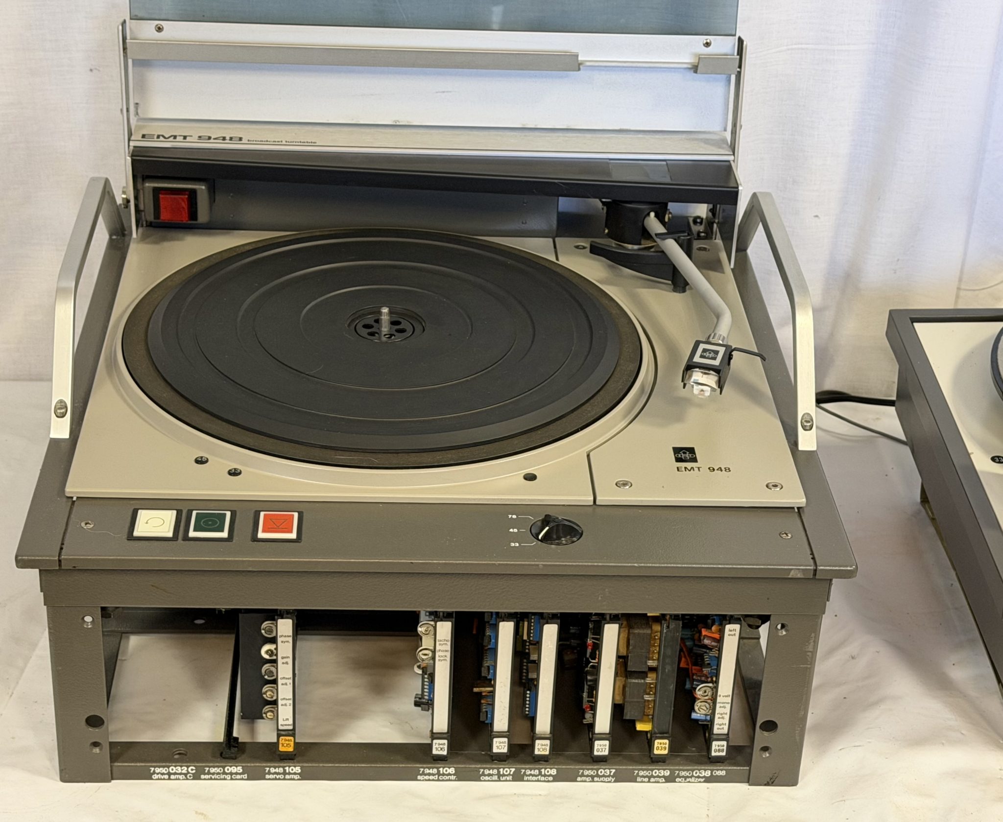 For the sale of a wonderful EMT 948 Professional Stereo Professional Stereo Studio Turntable, early version 9 948 110 with serial number. 530.. near 1989, complete.